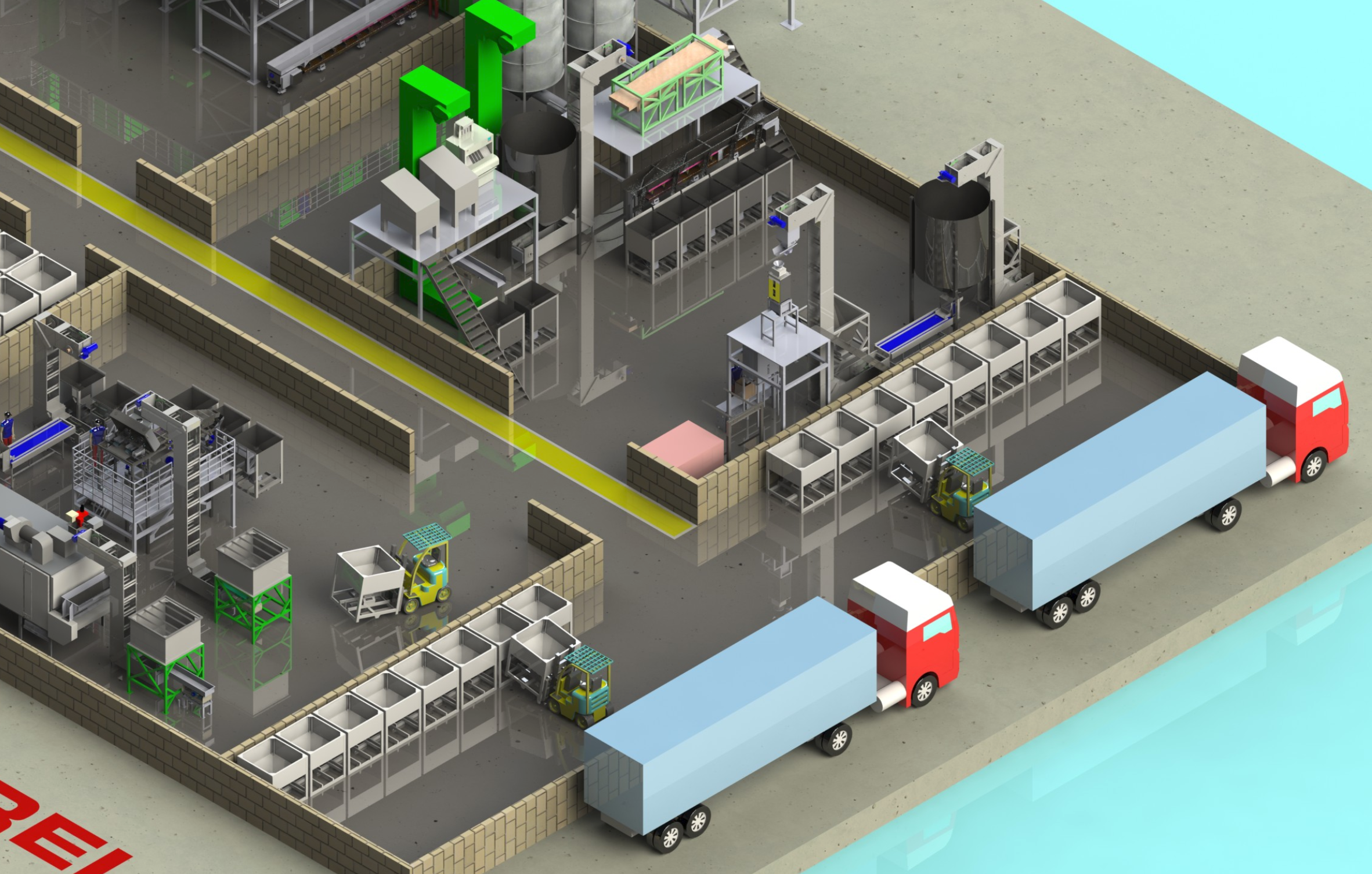 A wide range of additional equipment is available (screw conveyors, multi-discharge belts, elevators, feeders, automatic samplers,dust collection systems, continuous scales for production control level sensors and control systems)