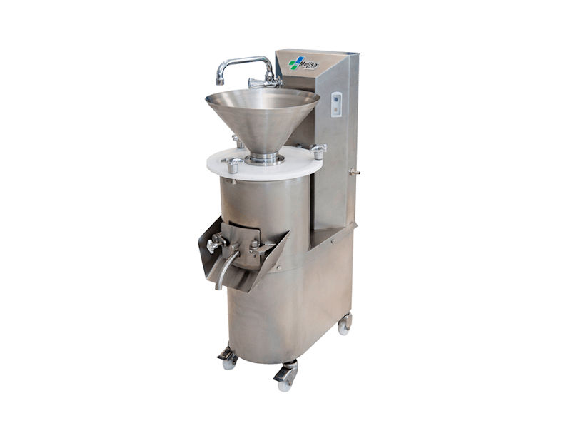 This machine works in a similar way to the H-MP3 but offers the possibility of continuous operation by incorporating a system for constantly emptying the pulp or okara produced during the process. Production is up to 33 gal/hr (150 l/hr) and use of chilled water is recommended to maintain consistent quality.