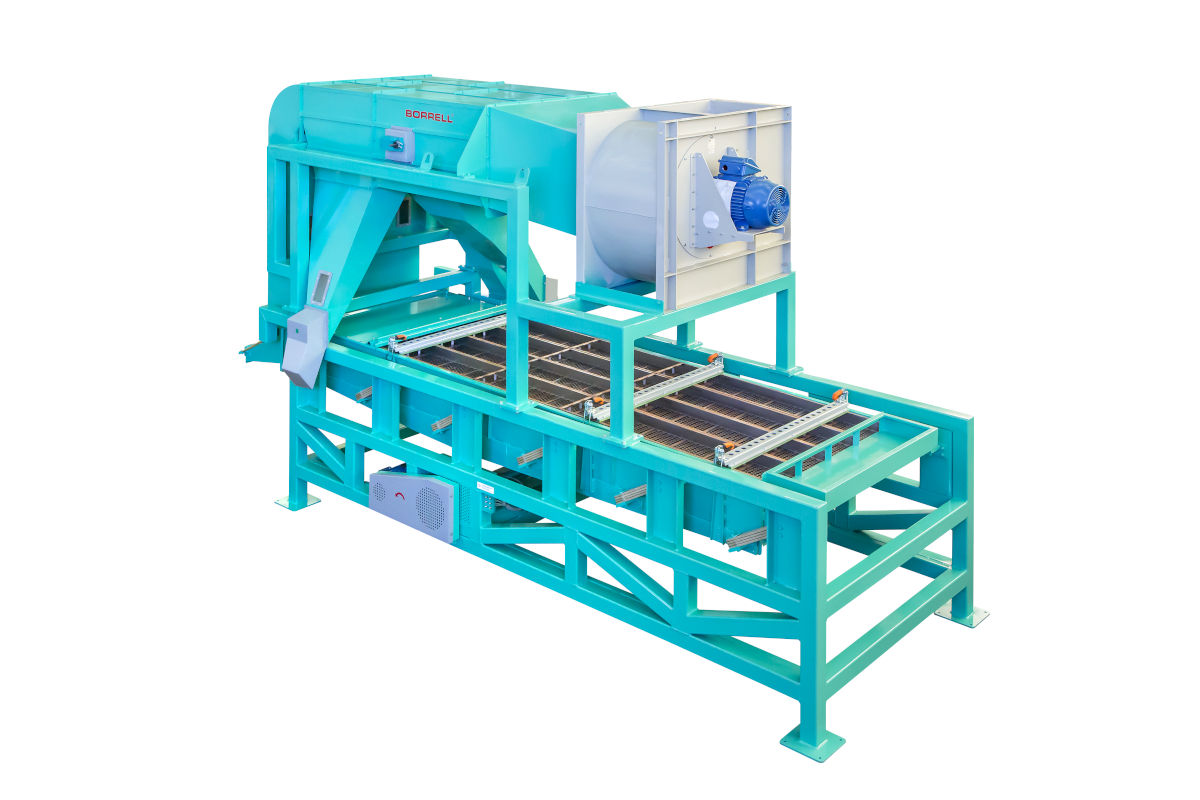 Heavy duty high capacity (up to 55,000 lb/h) de-stickers to separate large sticks. Solid construction with reinforced chain-screen system developed by Borrell® -
